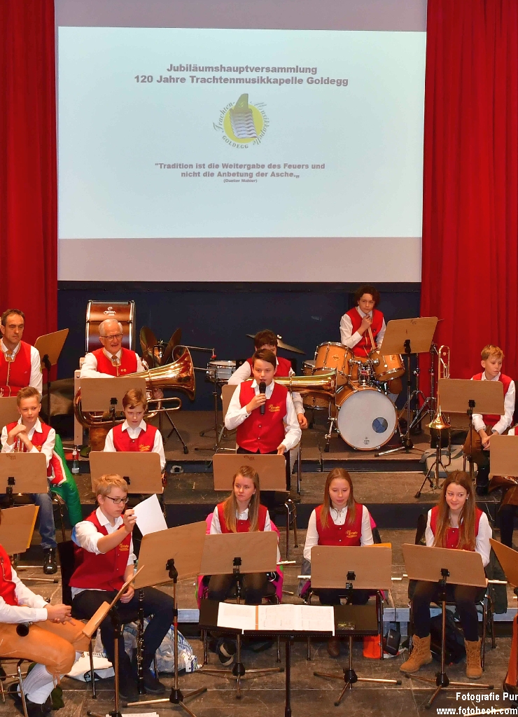 „Neues junges Blut“ und „alte Hasen“ waren bei der Jahreshauptversammlung der TMK Goldegg tonangebend. Ein musikalischer Höhepunkt der diesjährigen, öffentlichen Festversammlung anlässlich 120 Jahre Trachtenmusikkapelle Goldegg bildet die Umrahmung durch das Jugendorchester der TMK Goldegg mit Unterstützung einiger Musikerinnen und Musiker aus St. Veit und Schwarzach.
