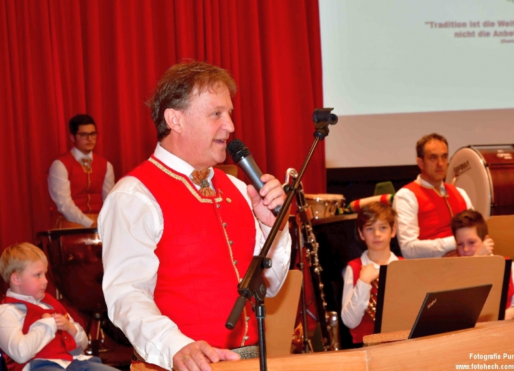 Obmann Erich Harlander übergab die organisatorischen Geschicke in die Hände von Hannes Obermoser. Die Berichte über ein ereignisreiches Vereinsjahr, die anstehenden Neuwahlen sowie ein „vielstimmiges“ Dankeschön an alle Musikerinnen und Musiker sowie die zahlreichen helfenden Hände im Rahmen der ehrenamtlichen Arbeit rings um die vielfältigen Vereinstätigkeiten standen im Mittelpunkt der Jahreshauptversammlung, welche am 28.Jänner 2018 im überfüllten Festsaal „Einklang“ stattfand.