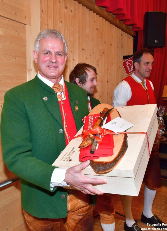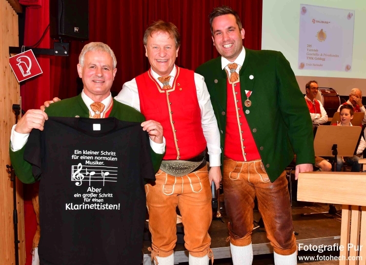Hois Rieger bedankte sich bei allen Mitgliedern der TMK Goldegg für die große Wertschätzung die ihm entgegengebracht wird, für das harmonische familiäre Miteinander, für die tolle Kameradschaft und die Liebe zur Musik. In die selbe Kerbe schlug auch Bgm. Hans Fleißner mit seinen Dankesworten.